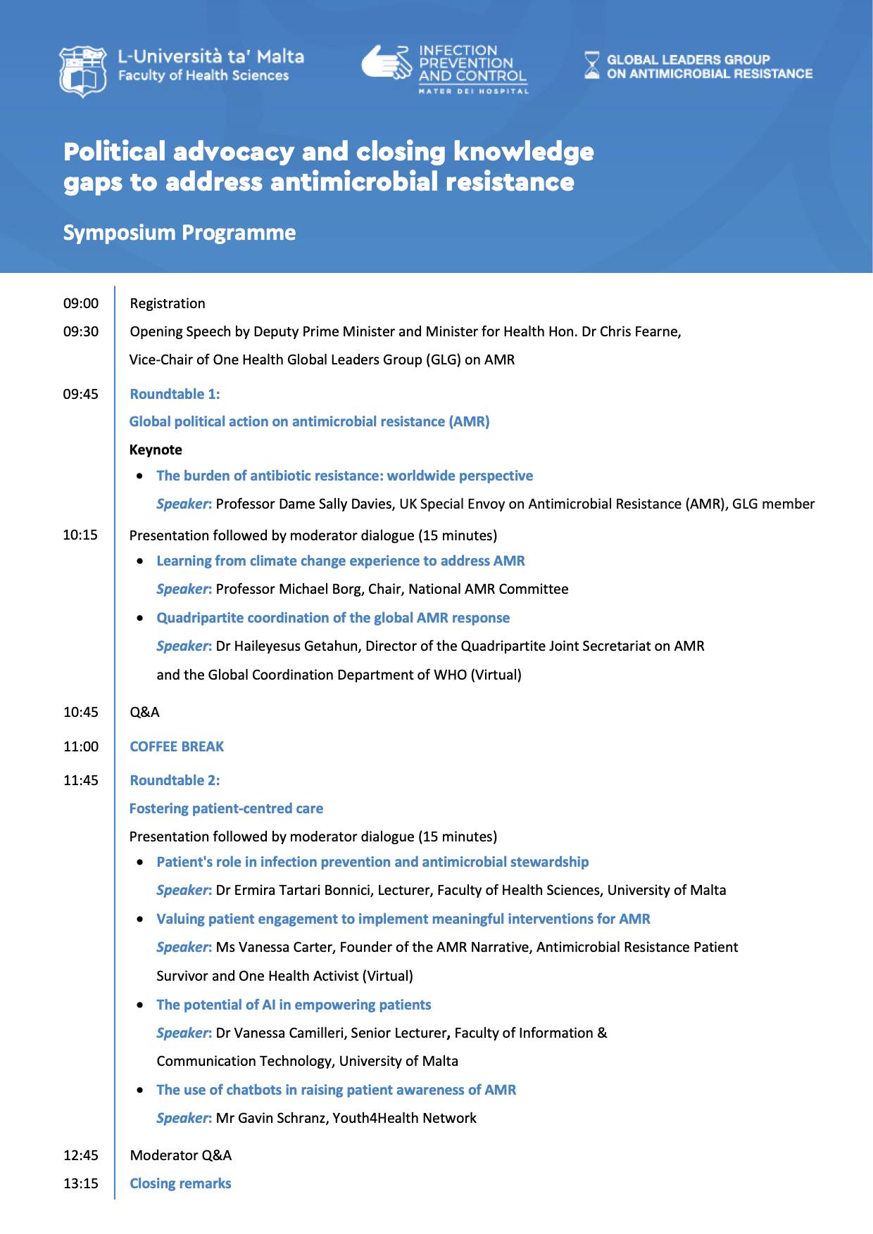 The Faculty of Health Sciences, University of Malta, in collaboration with the Global Leaders Group on Antimicrobial Resistance (AMR), is delighted to extend an invitation to an engaging symposium focused on raising awareness about AMR. This hybrid educational event seeks to shed light on the pressing issue of AMR and its profound impact on public health.